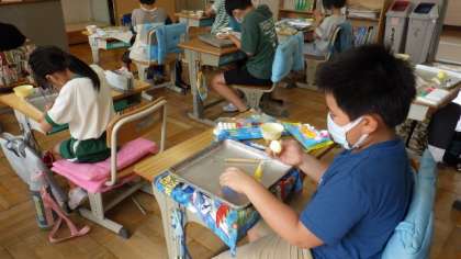 9月15日 3・4年図画工作 公開日 2022/09/15 更新日 2022/09/15 各学年から 9月15日 3・4年図画工作 「元気」をテーマに紙粘土で形作っています。水彩絵の具で部材に色を付けたり、違う色の粘土をねじったり。アイデアスケッチを見ながら、作りたいものに近づけようと奮闘していました。 3年 4年