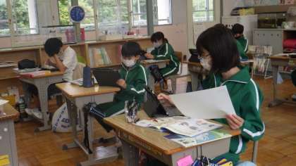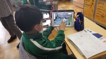 10月12日 5・6年理科 公開日 2022/10/12 更新日 2022/10/12 各学年から 10月12日 5・6年理科 「流れる水のはたらきと土地の変化」の学習で、矢作川の流れ方を調べています。源流から海にそそぐまで、どこをどんな形で流れているのか、タブレットで地図や写真を使って確かめていました。 5年 6年