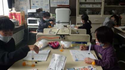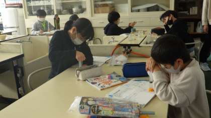 10月12日 3・4年理科 公開日 2022/10/12 更新日 2022/10/12 各学年から 10月12日 3・4年理科 注射器の中に閉じ込めた空気に力を加えるとどうなるか、実験しています。空気の体積が小さくなると、手ごたえが大きくなることを見つけていました。 3年 4年