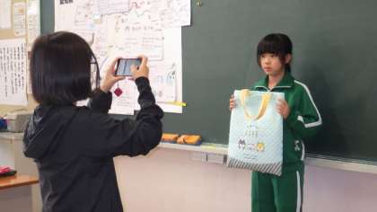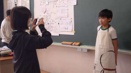 10月18日 5・6年家庭科 公開日 2022/10/18 更新日 2022/10/18 各学年から 10月18日 5・6年家庭科 作品ができ上がり、写真を撮っています。素敵なエプロンやトートバッグ、クッションができました。 5年 6年