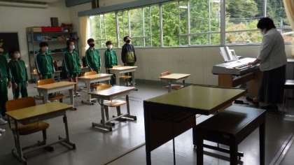 10月18日 全校音楽 低音部は音楽室で練習です。