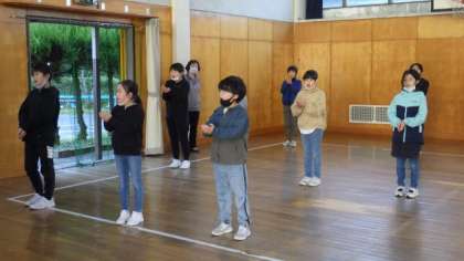 学芸会の全校音楽の練習です。今週は、二部合唱「夢の世界を」を合わせています。少しずつハーモニーがきれいになってきました。今日は、歌詞の意味を思い浮かべて歌いました。