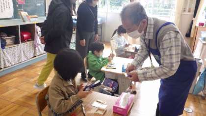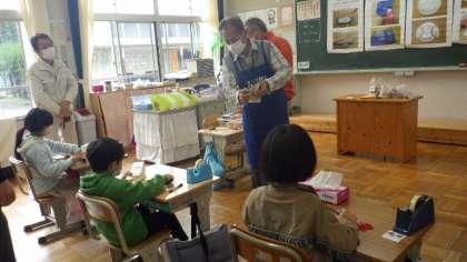 10月27日 1・2年ものづくり 公開日 2022/10/27 更新日 2022/10/27 各学年から 10月27日 1・2年ものづくり 今日はものづくりの先生から、牛乳パックや紙コップなどを使って、楽器づくりを教えていただきました。犬のカスタネット、牛乳パックと爪楊枝でつくるギロ、回すとカエルの声が聞こえるコップガエルを作りました。最後に音楽に合わせて、演奏を楽しみました。 1年 2年