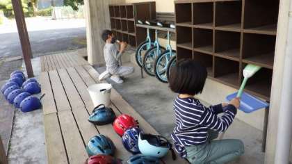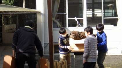 学芸会を明日に控えて、学校をきれいにしたり、舞台の準備をしたりしています。