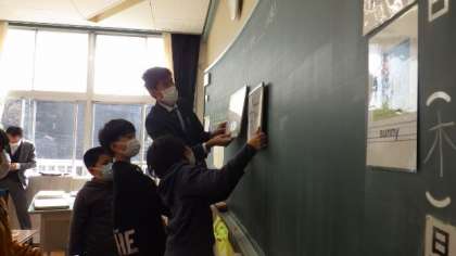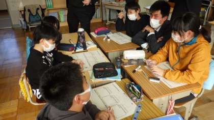 靴の形をした図形の面積の求め方を考えています。図形の中や外に直線を引いて、正方形や長方形の面積を求める公式を使って解いています。