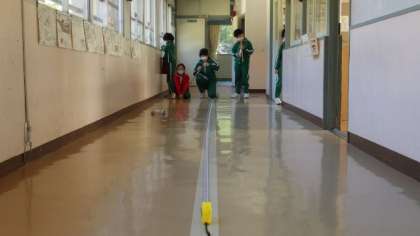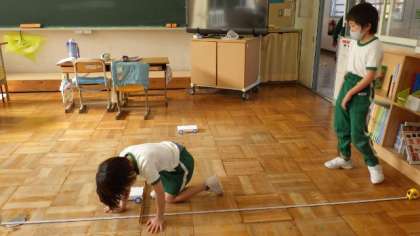 11月11日 3・4年理科 公開日 2022/11/11 更新日 2022/11/11 各学年から 11月11日 3・4年理科 ゴムで動く車を走らせて、走った距離を測っています。輪ゴムを伸ばす長さを変えるとどうなるか、実験から考えていました。 3年 4年