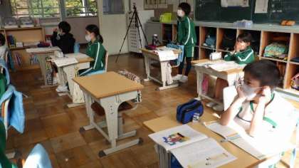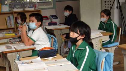 「いちばんうれしいこと」というアンパンマンの誕生にまつわる教材を使って、思いやりの心について考えています。アンパンマンにこめられたやなせたかしさんの思いについて、話し合っていました。