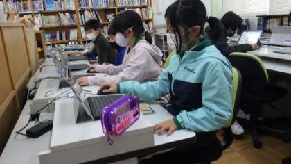 火山の噴火の仕組みや地層について調べています。調べた資料をリポート形式でまとめていました。