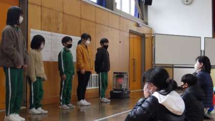 12月5日 冬の一行詩集会 公開日 2022/12/05 更新日 2022/12/05 学校行事 12月5日 冬の一行詩集会 みんなが作った一行詩の中から、いいなあと思った一行詩を理由とともに一人ずつ発表しました。その後、グループに分かれて合作しました。「夜ごはん みんなでなべ食べ あったまるぅ〜」など、冬をお題に実感のこもった一行詩を作っていました。 1年 2年 3年 4年 5年 6年