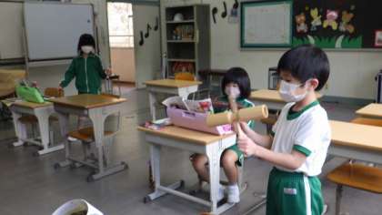 12月6日 1・2年音楽 公開日 2022/12/06 更新日 2022/12/06 各学年から 12月6日 1・2年音楽 表したい場面を選び、それに合う打楽器を探しています。どんなふうに演奏したらよいか、いろいろ試していました。 1年 2年