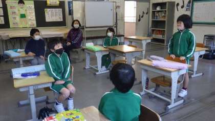「くるみわり人形」を鑑賞しています。「くるみわり人形」がどんなものかお話を聞いたり、使われている楽器について話し合ったりしていました。