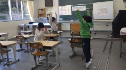 1月11日 1・2年音楽 公開日 2023/01/11 更新日 2023/01/11 各学年から 1月11日 1・2年音楽 「おちゃらかおちゃらかおちゃらかほい!」の歌に合わせてじゃんけんをしたり、絵描き歌でタヌキを描いたりしています。とても楽しそうでした。 1年 2年