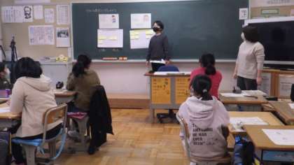 養護教諭の指導のもと、「けがをしないためにはどうするとよいか」話し合っています。