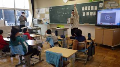 1月25日 3・4年外国語活動 公開日 2023/01/25 更新日 2023/01/25 各学年から 1月25日 3・4年外国語活動 箱の中に入っているものを想像して、英語で答えています。少しずつALTの先生がヒントを出してくれるのを聞いて、どんどん知っている単語を言っていました。 3年 4年