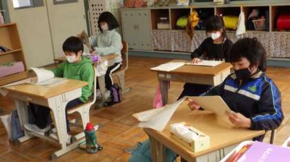 2月17日 1・2年生活科 公開日 2023/02/17 更新日 2023/02/17 各学年から 2月17日 1・2年生活科 新盛学習発表会の発表練習をしています。台本を持って読み合わせをしていました。 1年 2年