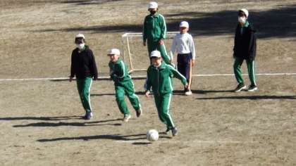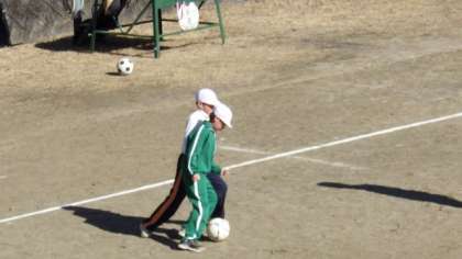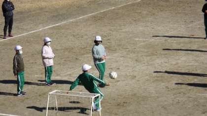 サッカーの試合をしています。積極的にボールに向かっている子がいます。