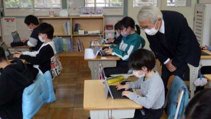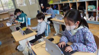 今日は、ICT支援員の方にキーボードで文字を打つための楽しい練習方法について教えていただきました。正しくローマ字入力ができると、画面や音が変化して楽しそうでした。