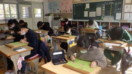 3月3日 5・6年図画工作 公開日 2023/03/03 更新日 2023/03/03 各学年から 3月3日 5・6年図画工作 版画の製作に集中しています。細かな部分を慎重に彫ったり、刷ってみて黒い部分の量を調整してみたりしています。 5年 6年