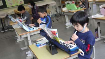 3月10日 1・2年音楽 公開日 2023/03/10 更新日 2023/03/10 各学年から 3月10日 1・2年音楽 1年間授業で練習してきた曲を、順に鍵盤ハーモニカで演奏しています。そのときのがんばりがよみがえってきますね。 1年 2年