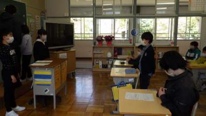 4月10日 5・6年学級活動 公開日 2023/04/10 更新日 2023/04/10 各学年から 4月10日 5・6年学級活動 それぞれが考えてきた級訓案を説明しています。どの子も新たな学級への思いを込めていました。 5年 6年