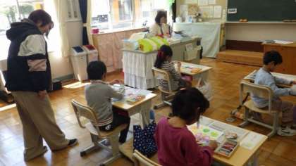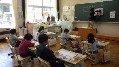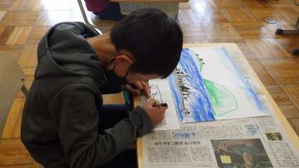4月10日 1・2年図画工作 自分のすきなものを描いています。とても楽しそうでした。