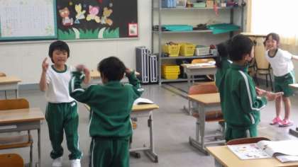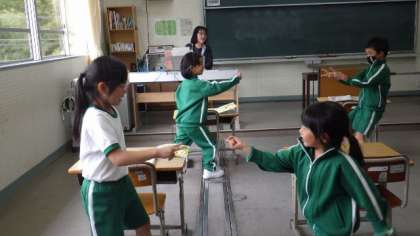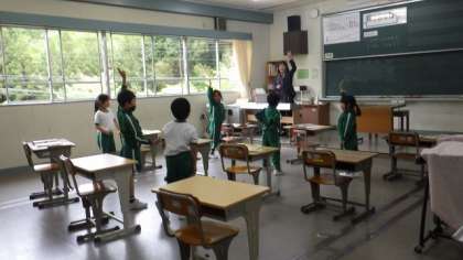 4月24日 1・2年音楽 歌の最後にじゃんけんをする曲です。真剣勝負です。