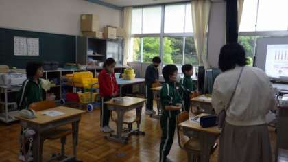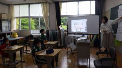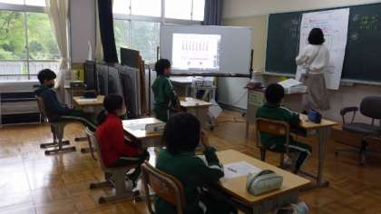 4年26日 4年算数 グラフの学習をしています。読み取ったことをみんなに説明していました。