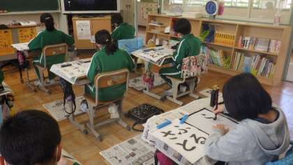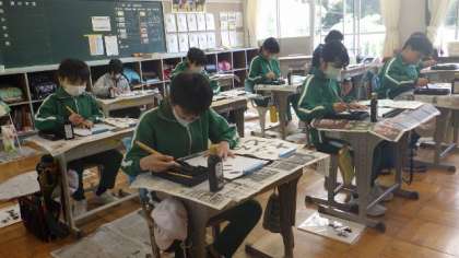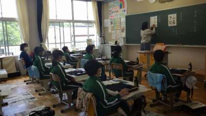 5月8日 5・6年書写 公開日 2023/05/08 更新日 2023/05/08 各学年から 5月8日 5・6年書写 今日は清書提出です。筆の動きと字の形についての先生の話を真剣に聞いて書いていました。 5年 6年