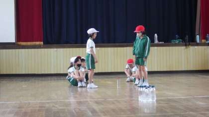 あすけ集合学習で行うゲームのデモンストレーションを撮っています。デモンストレーションとは言え勝負だからか、真剣な表情で活動していました。