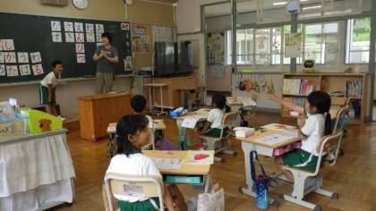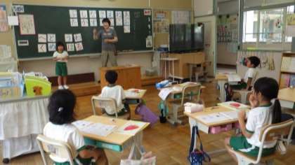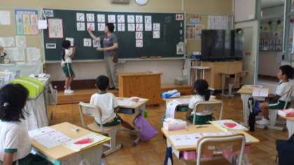 5月22日 1年国語 ひらがなを並べて、知っている単語を作っています。