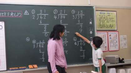 5月22日 4年算数 公開日 2023/05/22 更新日 2023/05/22 各学年から 5月22日 4年算数 わり算の筆算のやり方を学習しています。計算の作業の一つ一つについて説明していました。 4年