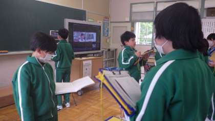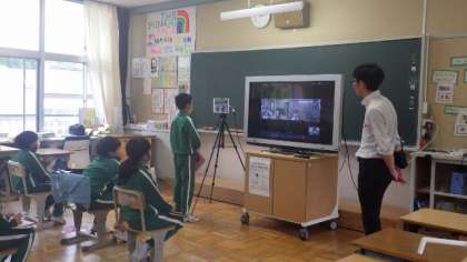 大蔵小学校の皆さんとのリモート授業です。どんな聞き方をしたら、相手が聞きたかったことを答えてくれるかを考え、考えたことを試しています。