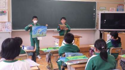 5月26日 5・6年図画工作 公開日 2023/05/26 更新日 2023/05/26 各学年から 5月26日 5・6年図画工作 「大切な場所」を描いた作品を互いに鑑賞し、その作品のよかったところを発表しています。よく見て、描いた人の工夫を見つけていました。 5年 6年