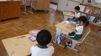 5月26日 1年算数 公開日 2023/05/26 更新日 2023/05/26 各学年から 5月26日 1年算数 「ぜんぶで」「合わせて」などの言葉を使ってたし算の学習をしています。数図ブロックを使って考えていました。 1年