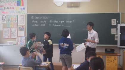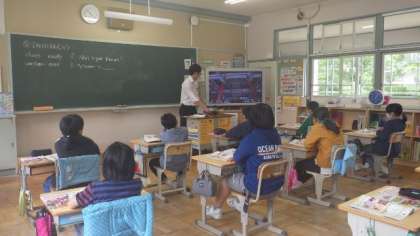 5月31日 5・6年外国語 ペアで会話の練習をしています。楽しそうです。