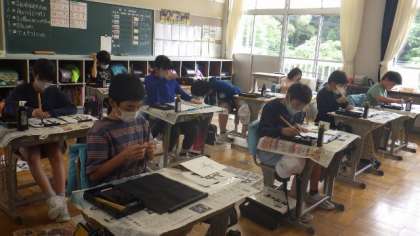 6月5日 5・6年書写 今日は清書の日です。みんな気持ちを込めて書いていました。