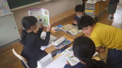 平安時代の行事、書物、衣食住の「あっぱれ!」なところをグループに分かれて調べています。分担を上手にしていました。