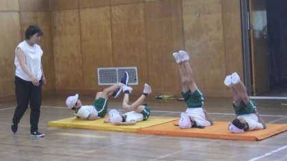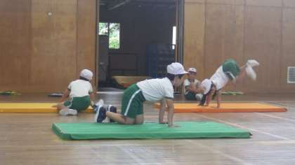 6月9日 1・2年体育 公開日 2023/06/09 更新日 2023/06/09 各学年から 6月9日 1・2年体育 マットを使って、手で腰を支えて肩で立つ逆立ちや、川またぎなどの技に挑戦しています。 1年 2年