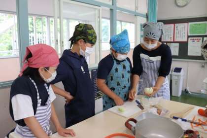 6月14日 5・6年家庭科 公開日 2023/06/15 更新日 2023/06/15 各学年から 6月14日 5・6年家庭科 5年生のキャンプに向けて、カレーライスを作っています。ご飯は飯盒で炊いていました。 5年 6年