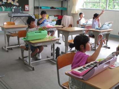 6月28日 1・2年音楽 公開日 2023/06/28 更新日 2023/06/28 各学年から 6月28日 1・2年音楽 「かっこう」を鍵盤ハーモニカで演奏しています。難しい指使いのところを、先生の真似をして練習しています。 1年 2年