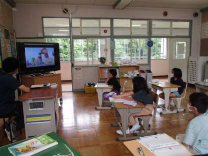 7月5日 3・4年道徳 動画を見てルールについて考えています。