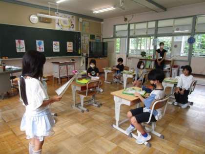 7月10日 3・4年図画工作 公開日 2023/07/10 更新日 2023/07/10 各学年から 7月10日 3・4年図画工作 「まぼろしの花」の鑑賞会です。互いの作品の素敵だとおもうところを「何色も色がつかってある」「迫力がある」などと話していました。 3年 4年