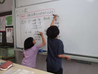 7月11日 4年算数 公開日 2023/07/11 更新日 2023/07/11 各学年から 7月11日 4年算数 小数を10倍、100倍したら、10で割ったり、100で割ったりしたら…という問題を解きながら、小数点の移動のルールを理解していました。 4年