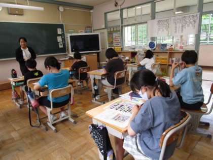 7月19日 5・6年家庭科 公開日 2023/07/19 更新日 2023/07/19 各学年から 7月19日 5・6年家庭科 これから作る縫製作品の説明を聞いています。どれにしようか考えていました。 5年 6年