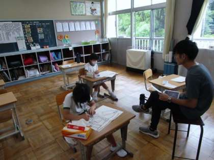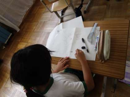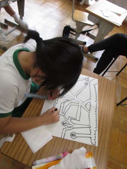 教科書の迷路を解いた後、自分たちでも迷路を作っています。とても楽しそうでした。