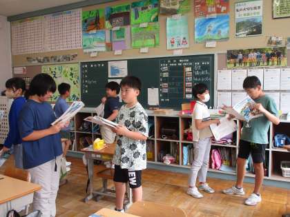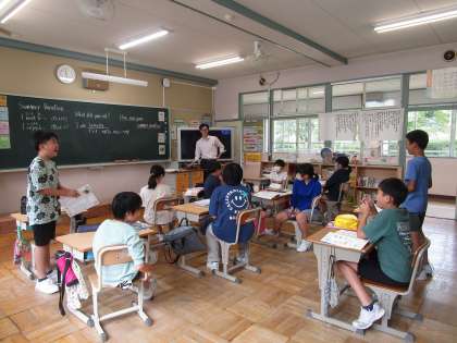 9月4日 5・6年外国語 公開日 2023/09/04 更新日 2023/09/04 各学年から 9月4日 5・6年外国語 夏休みの思い出について、互いに質問しあっています。「went 行った」や「ate 食べた」などの動詞の過去形を使って質問していました。 5年 6年