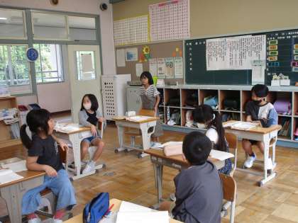 9月5日 3・4年国語 公開日 2023/09/05 更新日 2023/09/05 各学年から 9月5日 3・4年国語 「はりねずみと金貨」の第1場面の読み取りをしています。自分が読み取ったことを発表したり、友達の意見をワークシートに書き込んだりしていました。 3年 4年