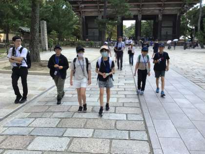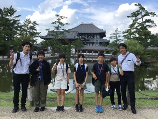 東大寺では大仏の大きさに感動していました。また、柱の穴くぐりにも挑戦しました。