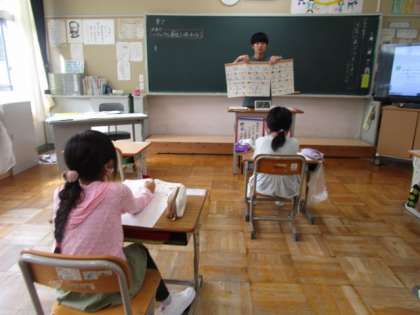 重さの単位「t」の学習です。先日学習したアルファベットと関連付けて、単位を覚えていました。