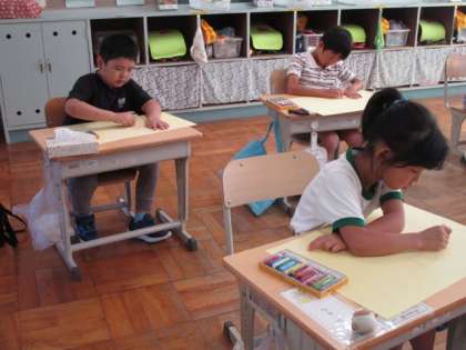 9月25日 1・2年図画工作 公開日 2023/09/25 更新日 2023/09/25 各学年から 9月25日 1・2年図画工作 「ことばのかたち」と題した作品です。台紙の色を選んでいました。 1年 2年